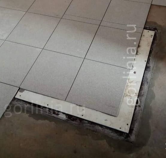 Облегченная рама из листового проката 3 мм с наличником для установки в поверх черновой стяжки в нулевую отметку полов. Каркас с обвязкой сварен из трубы 30х20, обшит ГВЛ над утеплителем под финишную отделку плиткой.