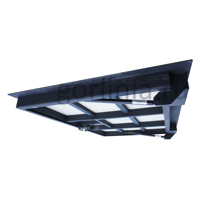 Продуманная схема скрытой установки посадочной части коробки 1200х700 в подготовленное посадочное отверстие в нулевую отметку пола. Облицовка примыкающего по периметру стального обрамления и ГВЛ полотна керамогранитом, плиткой (настил ламината) с эффектом невидимки.